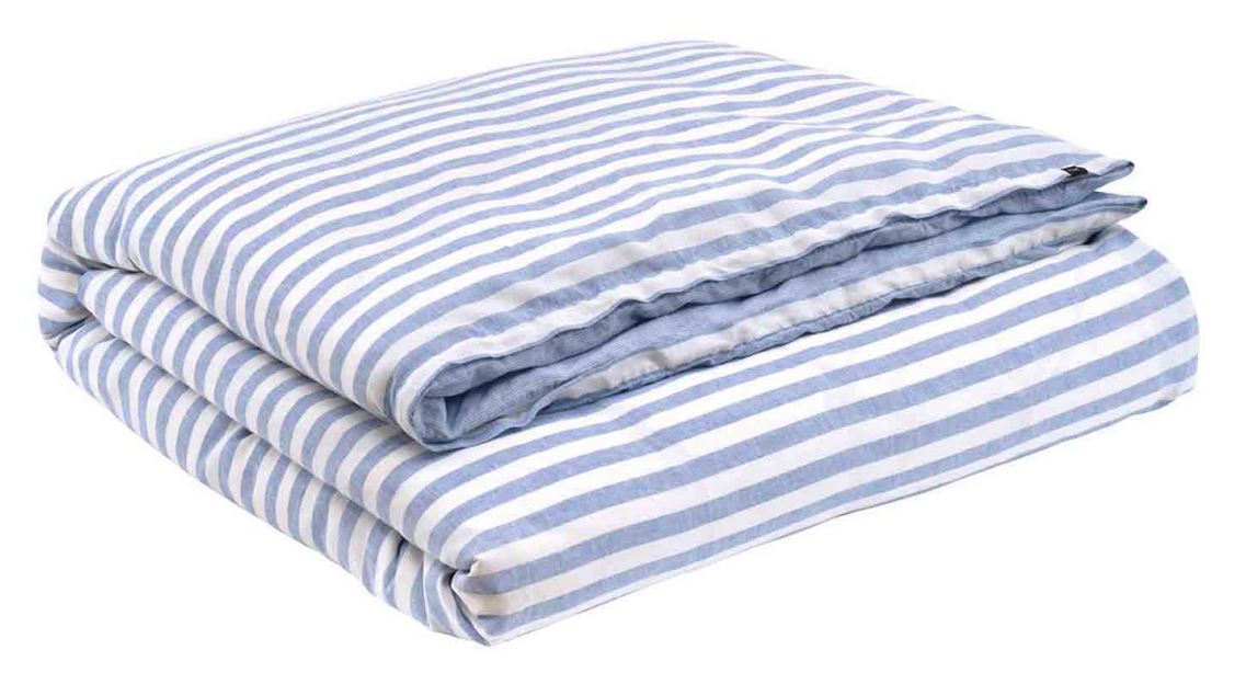 Summertime ist pure Lebensfreude. Breite Streifen kokettieren mit schmalen Nadelstreifen und bringen den Sommer ins Schlafzimmer. Die Doubleface Bettwäsche von CF by Christian Fischbacher in den luftigen Farben Silver Moon (hellgrau), Oatmeal (beige) und Morning Sky (hellblau) lässt sich nach Lust und Laune kombinieren.
