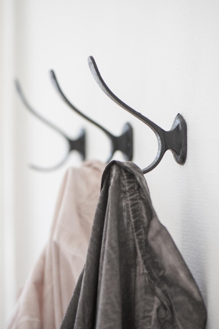 Der Wandhaken in schwarz ist sehr stabil und kann mit 2 Schrauben an der Wand befestigt werden. Einfache Montage. Er eignet sich natürlich auch gut als Garderobenhaken für