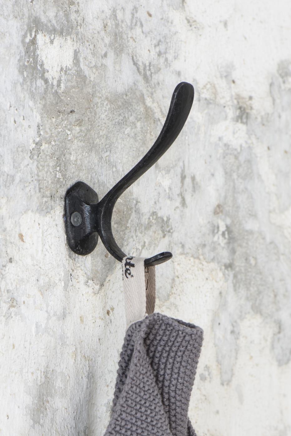 Eisenguss Haken schwarz, für die Garderobe oder das Geschirrtuch oder Handtuch in der Küche oder im Bad geeignet.