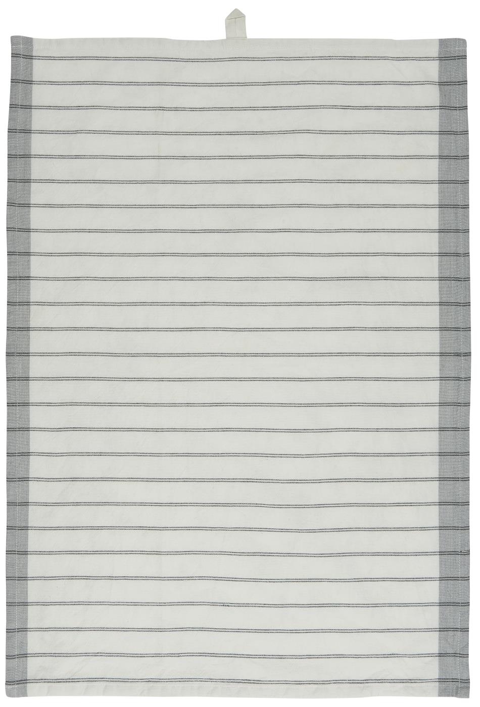 Preview: Geschirrtuch weiss m/grauen Kanten und schwarzen Streifen