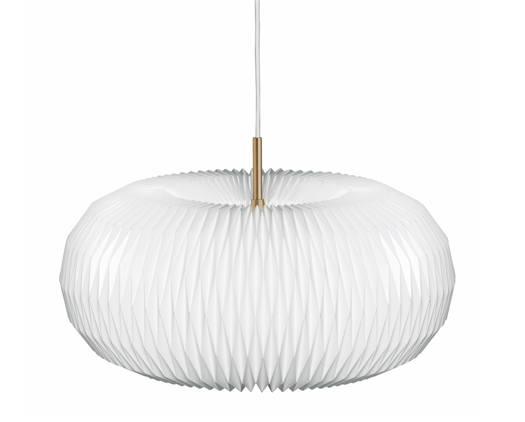 DONUT ist in zwei Größen mit gefalteten Schirmen, Metallteilen aus Messing und Textilkordel erhältlich.