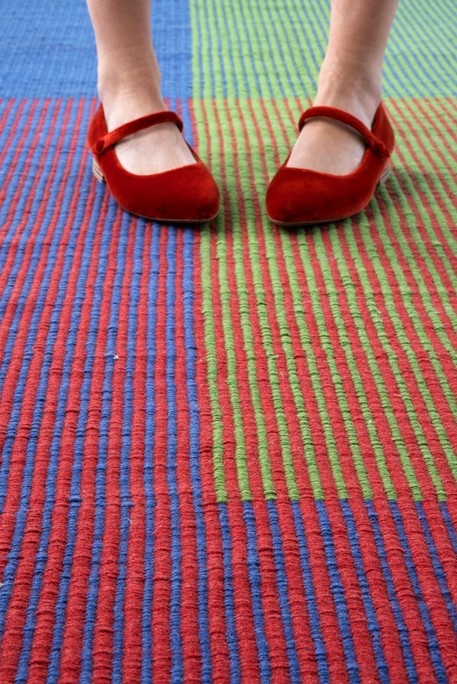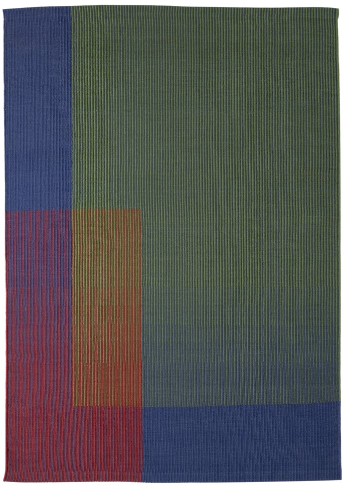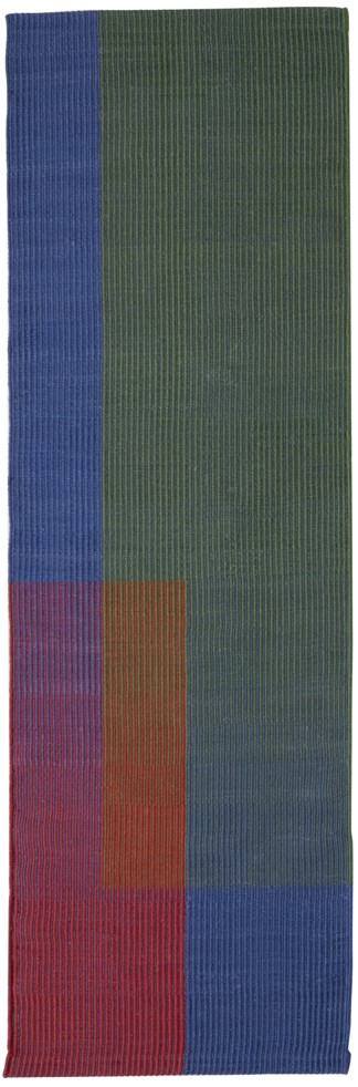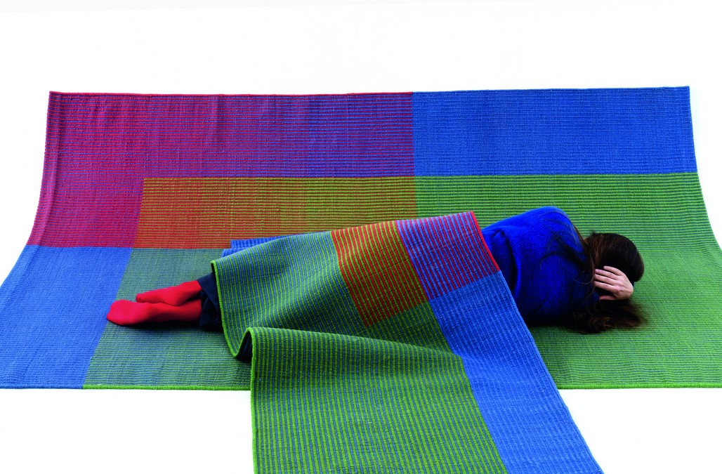 Im Gegensatz zu anderen kreativen Prozessen ist Haze ein Teppich, der direkt auf dem Webstuhl entstanden ist, da der Designer mit chromatischen Interaktionen und dem Verblassen von Farben durch optisches Mischen von Farben experimentiert hat.