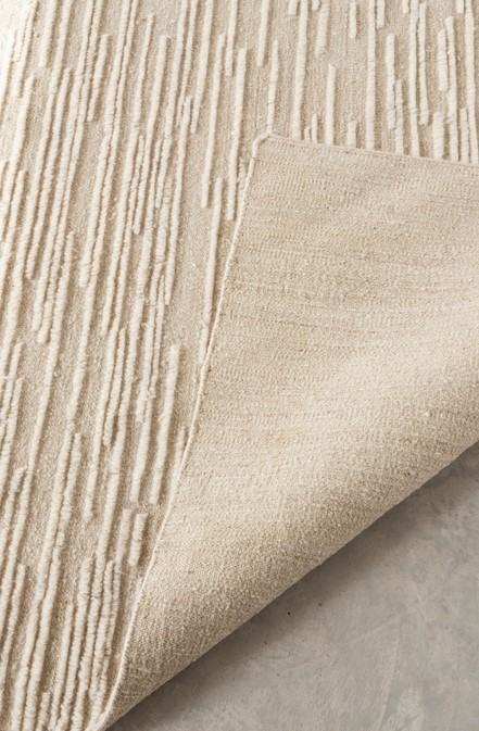 Doblecara, entworfen von Ronan Bouroullec, spiegelt seinen Geist der Geometrie durch subtile lineare und unterbrochene Striche wider, die in einem verschwommenen Punkt enden und im Auge des Betrachters ein Gefühl der Bewegung erzeugen.Doblecara 4 ist ein Wendeteppich, der von beiden Seiten genossen werden kann. Die "A"-Seite zeigt das Design mit der größten Persönlichkeit, bei dem die strengen hellen Linien dank der verschiedenen Ebenen zwischen den Techniken am besten zur Geltung kommen, während die "B"-Seite die subtilste und zarteste ist, bei der der raue Ton zusammen mit den weichen Strichen hervorsticht.