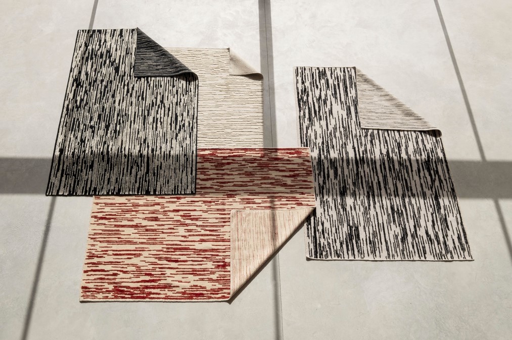 Die Beherrschung und der unermüdliche Wunsch, immer einen Schritt weiter zu gehen, führten zu dieser Kollektion mit einer doppelten Bedeutung. Doblecara ist ein Wendeteppich, der von beiden Seiten genossen werden kann. Die A-Seite zeigt das geradlinige Design in seiner maximalen Ausprägung, während die B-Seite die subtilste und zarteste ist.
