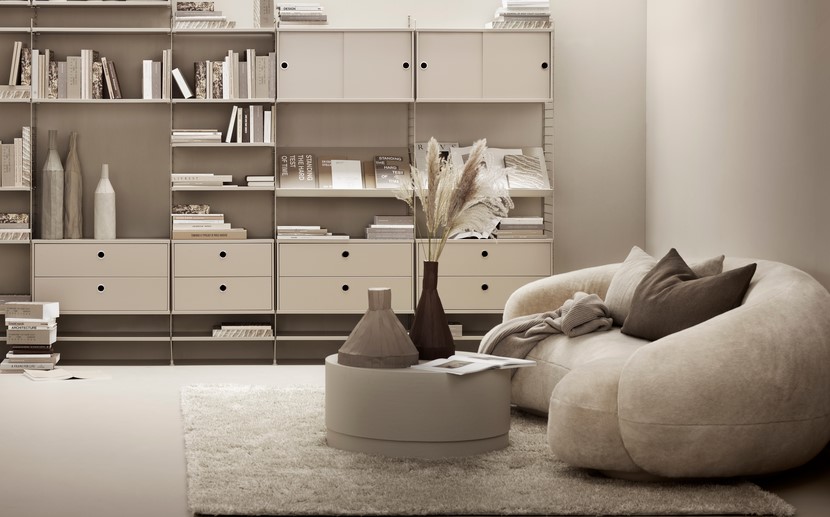 Regalsystem im Jahr 1949 vom Schweden Nils Strinning entworfen, ist zu einem bedeutenden Designklassiker des 20. Jahrhunderts geworden.