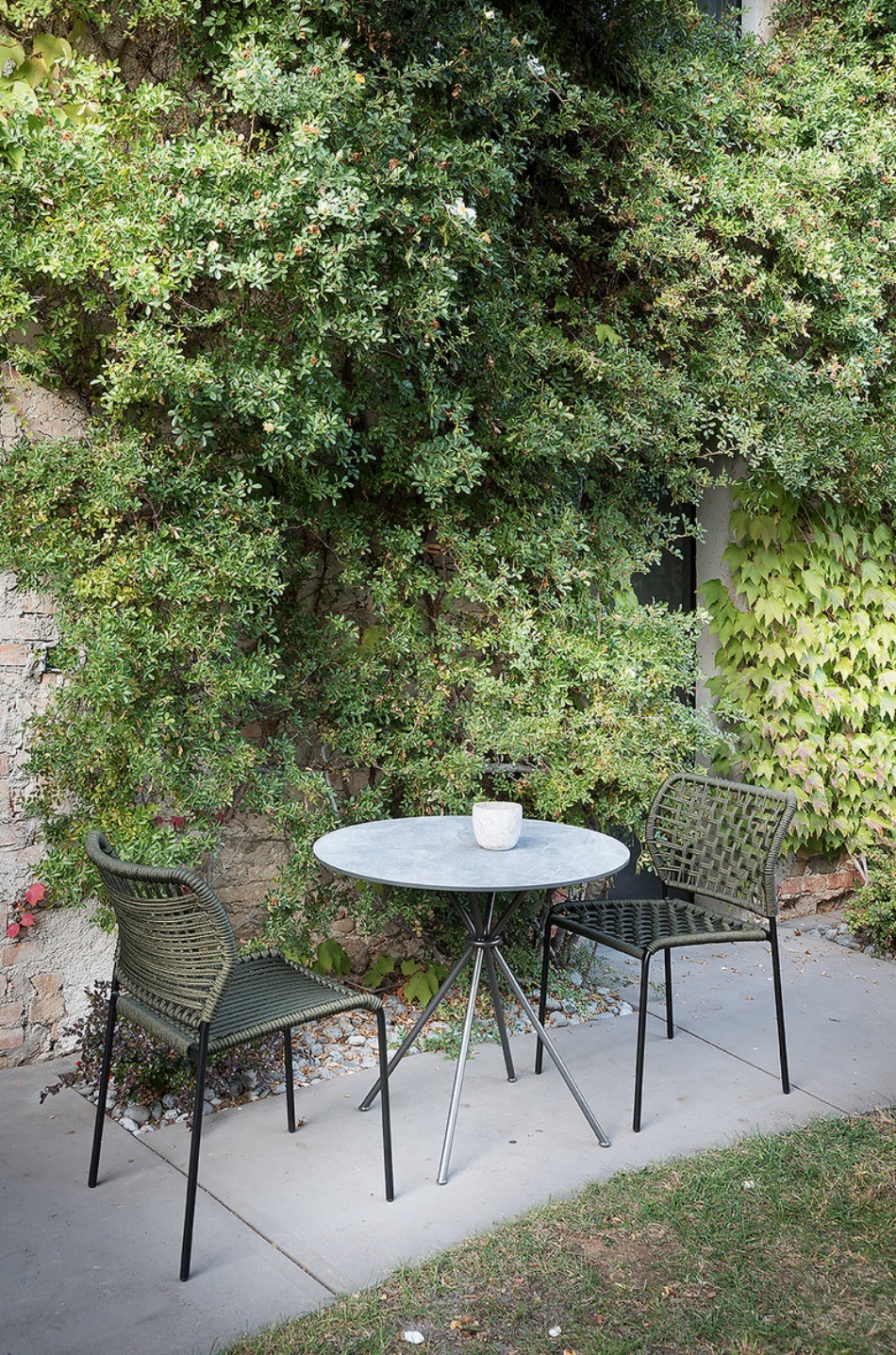 "Corda" ist ein moderner Stuhl, der sowohl drinnen als auch draußen verwendet werden kann. Die lackierte Stahlkonstruktion ist in drei Farben erhältlich und wird mit der Farbe des Seils kombiniert, das die Tragkonstruktion von Sitz und Rücken bildet. Es stehen zwei verschiedene Webarten zur Auswahl, beide handgewebt.