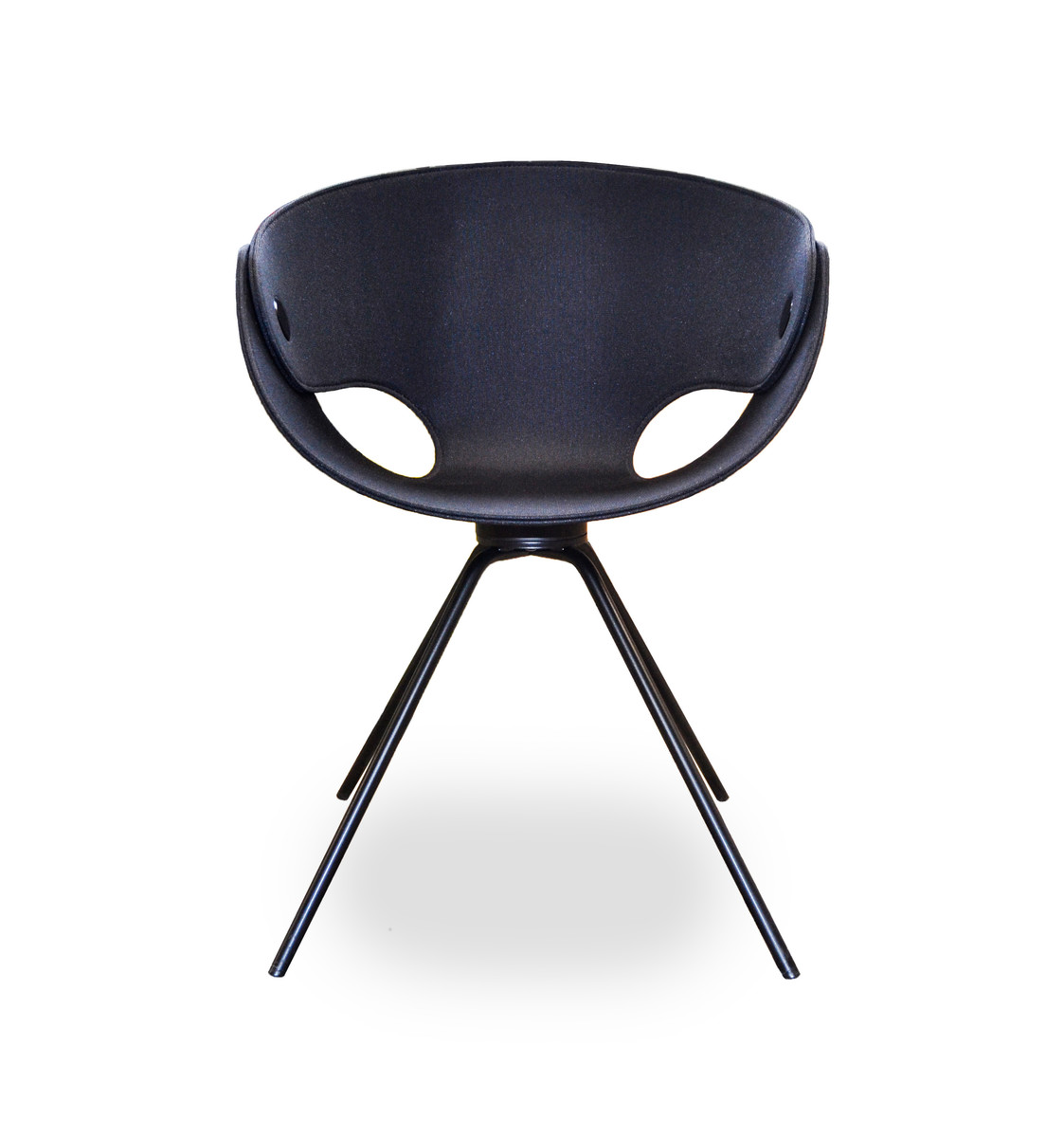 Wie der Name schon sagt, besteht Fl @ t aus einer dünnen, flachen, flexiblen und gepolsterten Form, die gebogen wird, um eine einzigartige Schale zu erhalten. Die Schalenelemente werden mit speziellen Stahlbefestigungen gehalten, die gleichzeitig eine attraktive Dekoration bilden. Die Schale ist fast schwebend an einem Bogen aus schwarz beschichtetem Aluminium aufgehängt, der aus demselben Material mit der Basis verbunden ist. Die leicht flexible Schale wirkt leicht und bietet gleichzeitig höchsten Sitzkomfort.