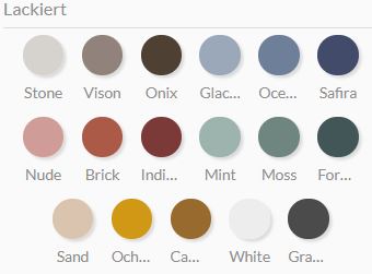 die zu einem persönlichen und einzigartigen Ergebnis kombiniert werden können. Sehen sie dazu die Farben und Holzsorten im Anhang.