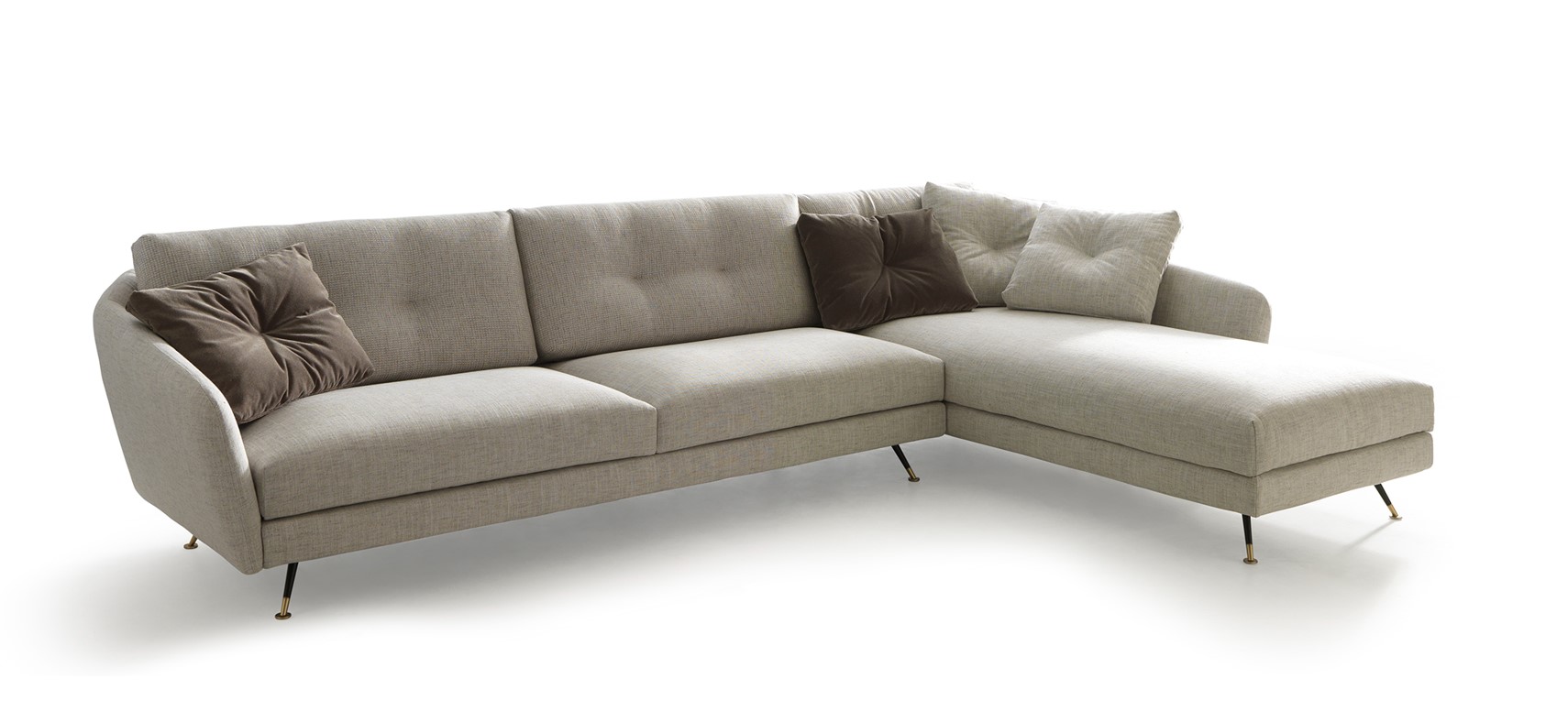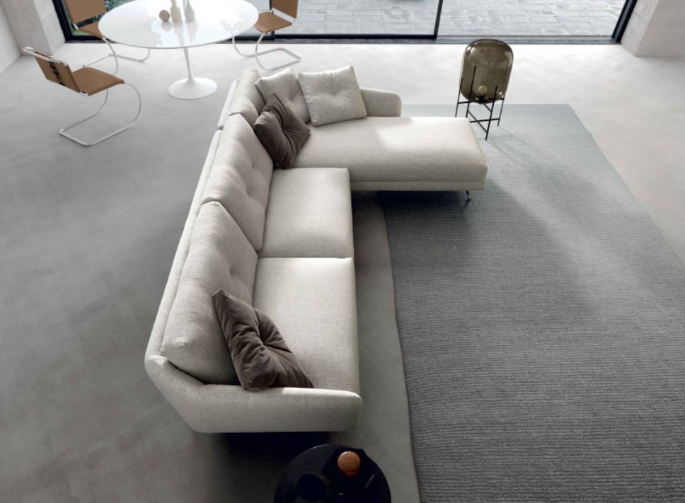 Duke: ergonomische Formen, die Armlehnen sind eins mit der Rückenlehne, die weichen Kissen dekorieren die schmale Struktur. In linearer oder L-förmigen Version gelingt es ihm immer, den Stil Ihres Wohnzimmers zu interpretieren