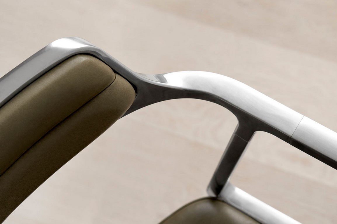 Material: Pulverbeschichtetes oder poliertes Aluminium mit Lederpolsterung.